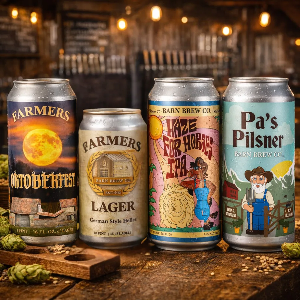 Crafted with care and rooted in New England tradition, Barn Brew Co. beers deliver bold flavor, balanced profiles, and true craft quality. From smooth German-style lagers to hazy IPAs and seasonal favorites like Oktoberfest, every can carries the spirit of The Barn.